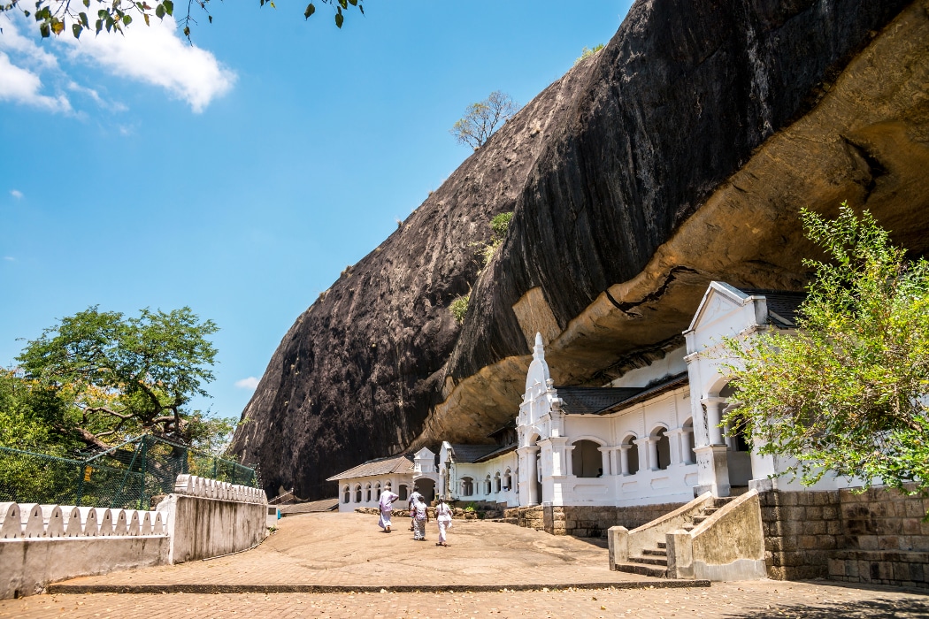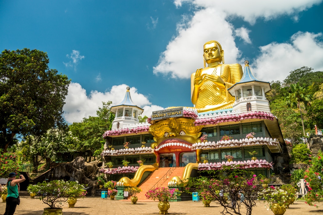 Répertorié par l’Unesco depuis 1991, le Temple d’Or de DAMBULLA est un monastère rupestre, dont les cinq grottes sanctuaires sont entièrement ornées de peintures murales bouddhiques, exécutées au XVIIIe s. Toute de vermillon et d’ocre, cette chatoyante composition de Dambulla recouvre 2100 m2.